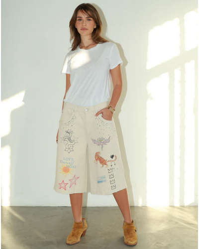 ME369 - Bermuda denim crème broderies coupe large Indi